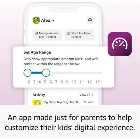 • Amazon Kids features – Offers educational, age-appropriate apps, books, and videos