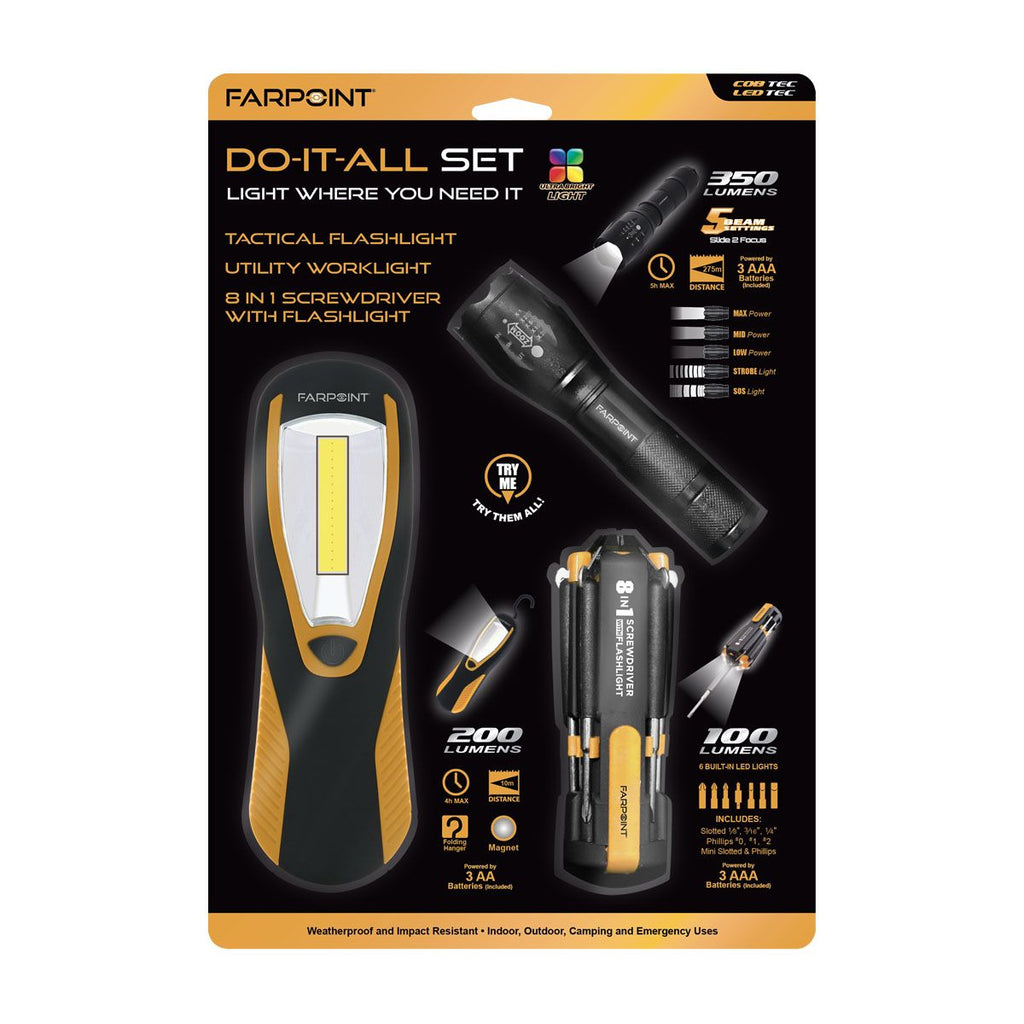 Farpoint FL330806 Worklight, Flashlight, 8 in 1 LED Screwdriver
