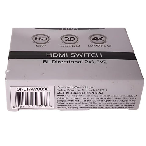 ONN ONB17AV009E Bi-Directional HDMI Switch 4K 2x1/1x2