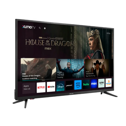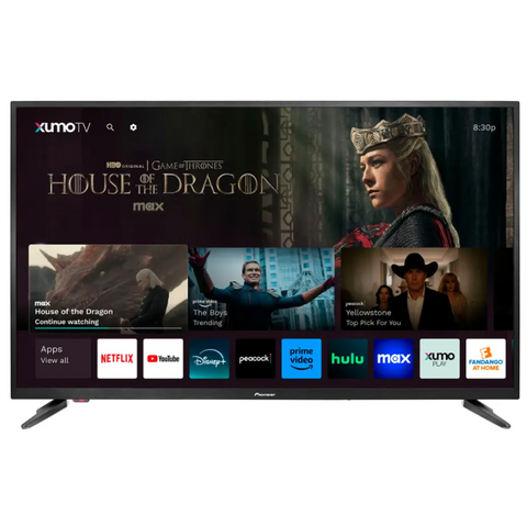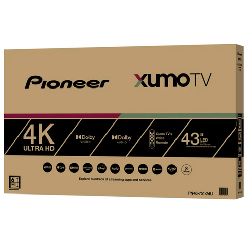 The Pioneer 43 inch LED 4K UHD Smart Xumo TV delivers stunning picture quality with crisp 4K resolution. Featuring smart capabilities with Xumo streaming, it offers easy access to popular apps and channels, making entertainment effortless.