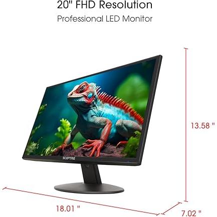 The Sceptre E205W LED Monitor delivers sharp HD+ visuals and smooth performance in a compact 20-inch design. With a 1600 x 900 resolution and 75Hz refresh rate, it offers clear, vibrant images and fluid motion for both work and entertainment. Built-in speakers and multiple connectivity options make it a versatile and space-saving choice for any setup.