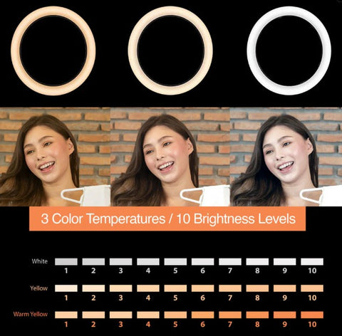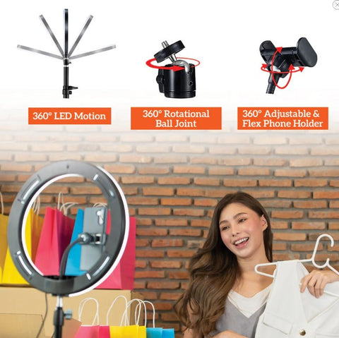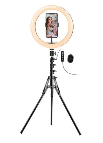 • 10 inch LED ring light – Produces soft, even illumination ideal for video and photo content