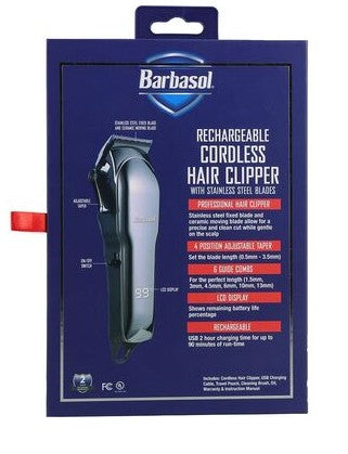The Barbasol CBH14007SIG Rechargeable Cordless Hair Clipper Moving Blade LCD Display 6 Guide Gray Ceramic is designed for precise haircutting and styling at home or on the go. Featuring a moving ceramic blade for smooth, sharp cuts, a clear LCD display to show battery life and settings, and six guide combs for versatile trimming lengths, this cordless clipper offers convenience and performance in a sleek gray finish. Rechargeable and portable, it’s ideal for DIY grooming and detail work.