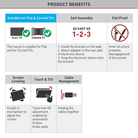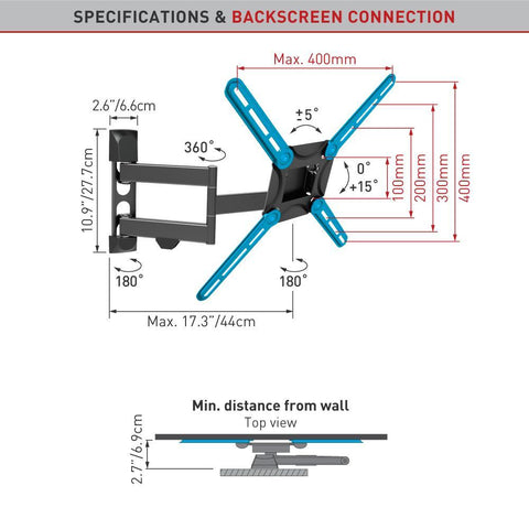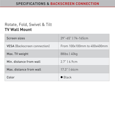 Barkan 3400 Tv Wall Mount 29”- 65” Full Motion - 4 Movements, Flat / Curved