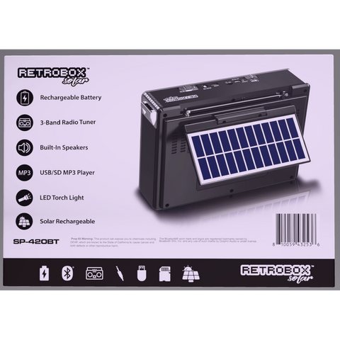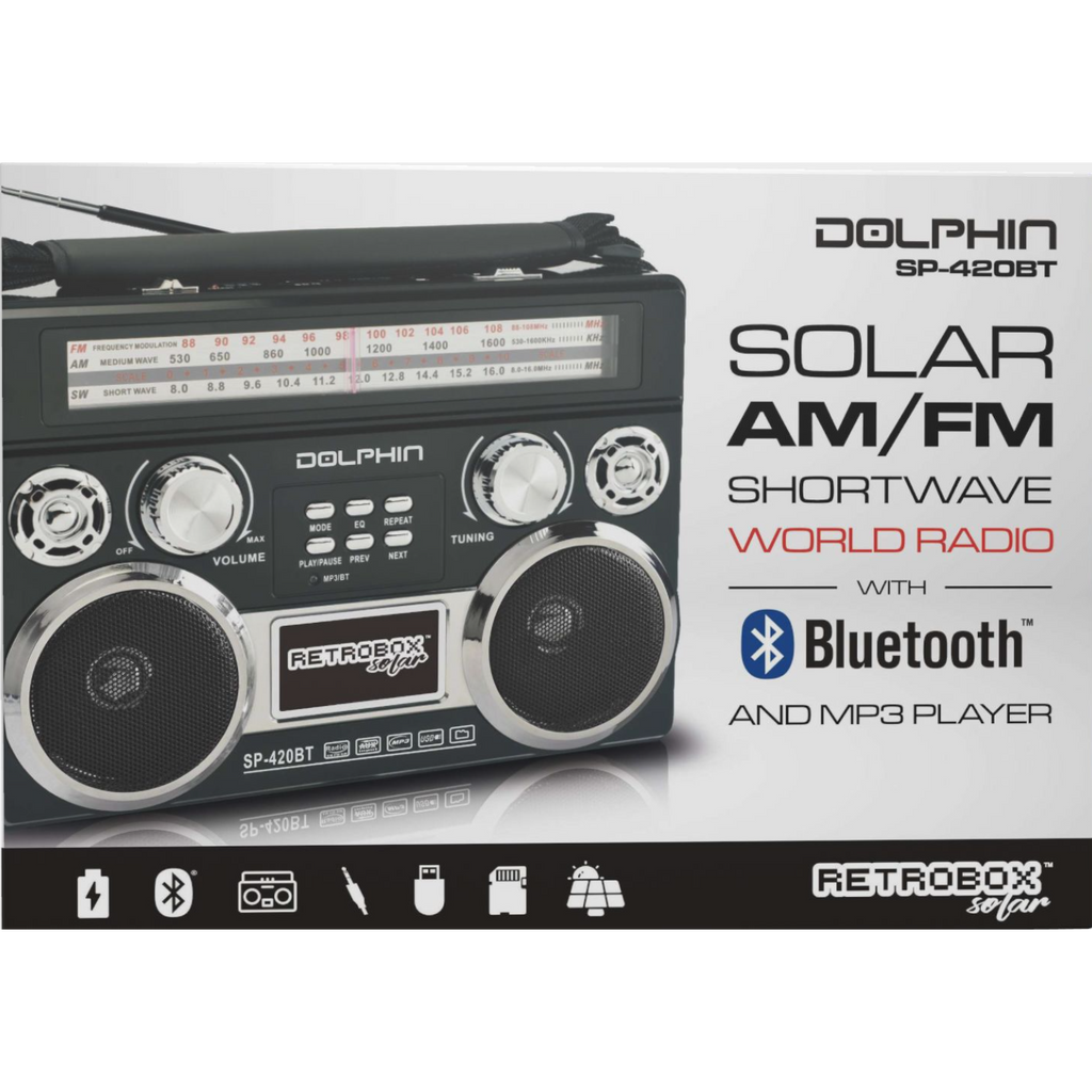 Dolphin SP420BTBK Retrobox Solar Rechargeable Speaker W/Bluetooth, AM/FM - Black