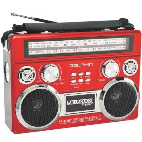 Dolphin SP420BTRD Retrobox Solar Rechargeable Speaker – Bluetooth, AM/FM (Red)