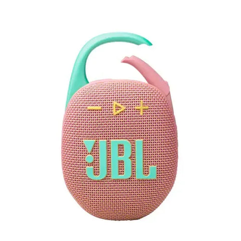 The JBL Clip5 Pink Portable Bluetooth Speaker delivers powerful JBL Pro Sound in a compact, waterproof design. With an upgraded carabiner clip and extended battery life, this ultra-portable speaker is made for on-the-go music wherever life takes you.