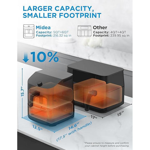 Midea MAD113MCAF-R/B Dual Basket Air Fryer Oven 11 Quart - CERTIFIED REFURBISHED