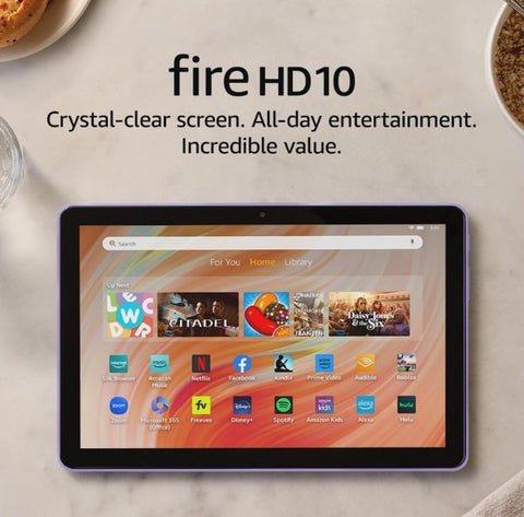 The Amazon Fire HD 10 Tablet 32GB Purple Lilac offers a vibrant 10.1-inch Full HD display and solid performance for browsing, streaming, reading, and everyday tasks. With 32GB of storage and expandable microSD support, this tablet gives you plenty of space for apps, movies, and photos, while hands-free Alexa lets you control the device, entertainment, and smart home with ease. Its sleek purple lilac finish and long battery life make it perfect for work, play, and family use.