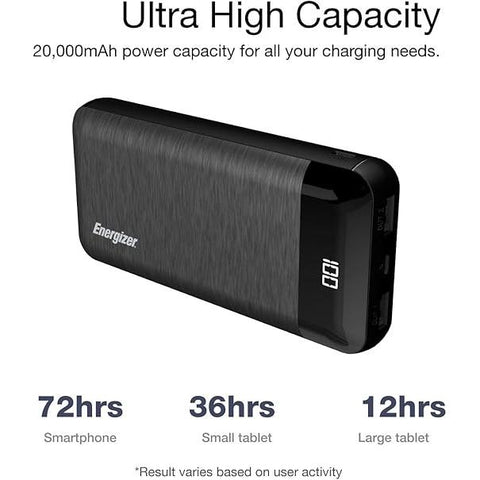 Stay powered up wherever you go with the Energizer ENEUE30055PQ 30,000mAh Power Bank. Designed for high-capacity fast charging, this power bank ensures your devices remain charged throughout the day. Its multiple output ports, smart protection system, and rapid charging technology make it a reliable companion for all your power needs.