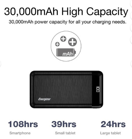 • 30000mAh ultra-high capacity – Supplies days of backup power for phones, tablets, and accessories