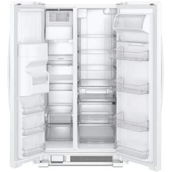 The Whirlpool WRS325SDHW Side-by-Side Refrigerator 36 inch delivers reliable performance and ample storage for fresh and frozen items. With adjustable shelving, bright LED lighting, and a built-in ice and water dispenser, it's designed to keep your kitchen running smoothly.