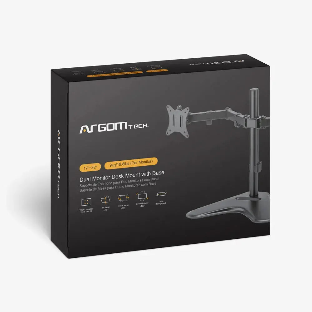 Argom ARG-BR-1605 Dual Monitor Desk Mount with Base – Supports 17"–32" Screens, VESA 75x75/100x100, 9kg Capacity