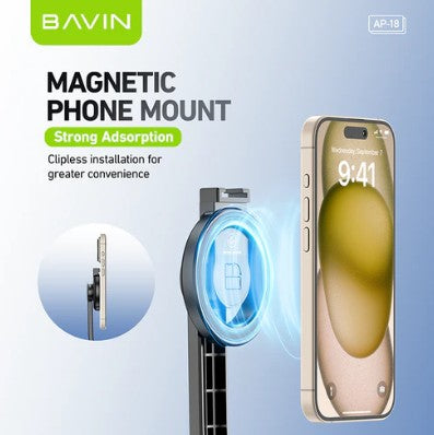 The Bavin AP18 Magnetic Retractable Selfie Stick Tripod offers versatile support for selfies, group photos, and video recording with a compact, extendable design. Featuring a built-in magnetic mount and retractable tripod legs, it makes setup quick and easy on desks, floors, or other flat surfaces. Its lightweight construction and stable grip make it ideal for travel, content creation, and everyday photography.