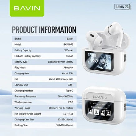 The Bavin HB-BA73 Wireless Bluetooth Earbud delivers clear, reliable sound with a compact, true wireless design that’s perfect for everyday listening, calls, and on-the-go audio. Featuring Bluetooth connectivity and a snug fit, this earbud provides simple, cable-free convenience with solid performance. Its lightweight build and easy pairing make it a great choice for commuters, students, and casual listeners alike.