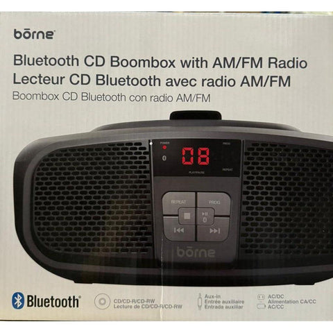 Borne PRCD685B Portable CD Boombox with AM/FM Radio, Bluetooth, and AUX Input
